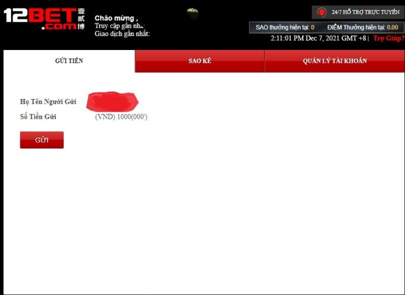 Lưu ý khi nạp tiền vào 12Bet
