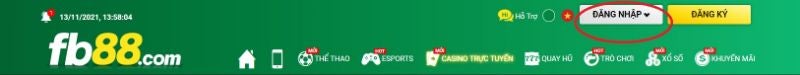 Bước 1: Sau khi truy cập website của FB88. Hãy click vào ô đăng nhập (nằm ngay bên cạnh ô Đăng Ký)